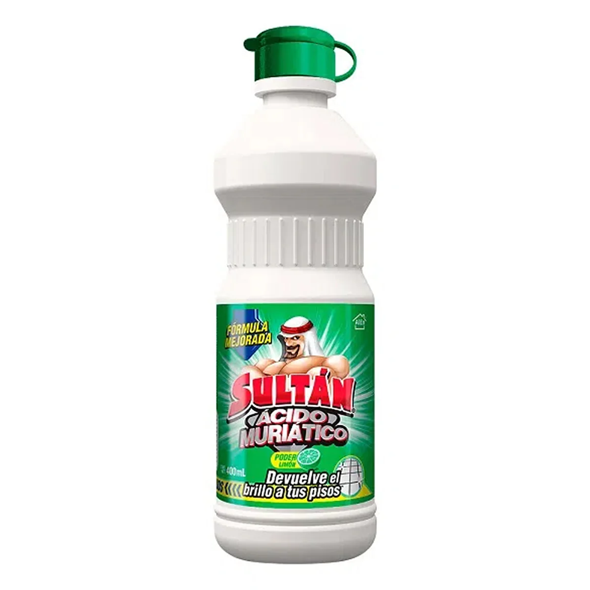 Ácido Muriático Sultán Limón De 400 Mililitros Elimina Manchas Difíciles Gran Concentración Y Alto Poder Para Quitar Sarro, No Se Deje Al Alcance De Los Niños.