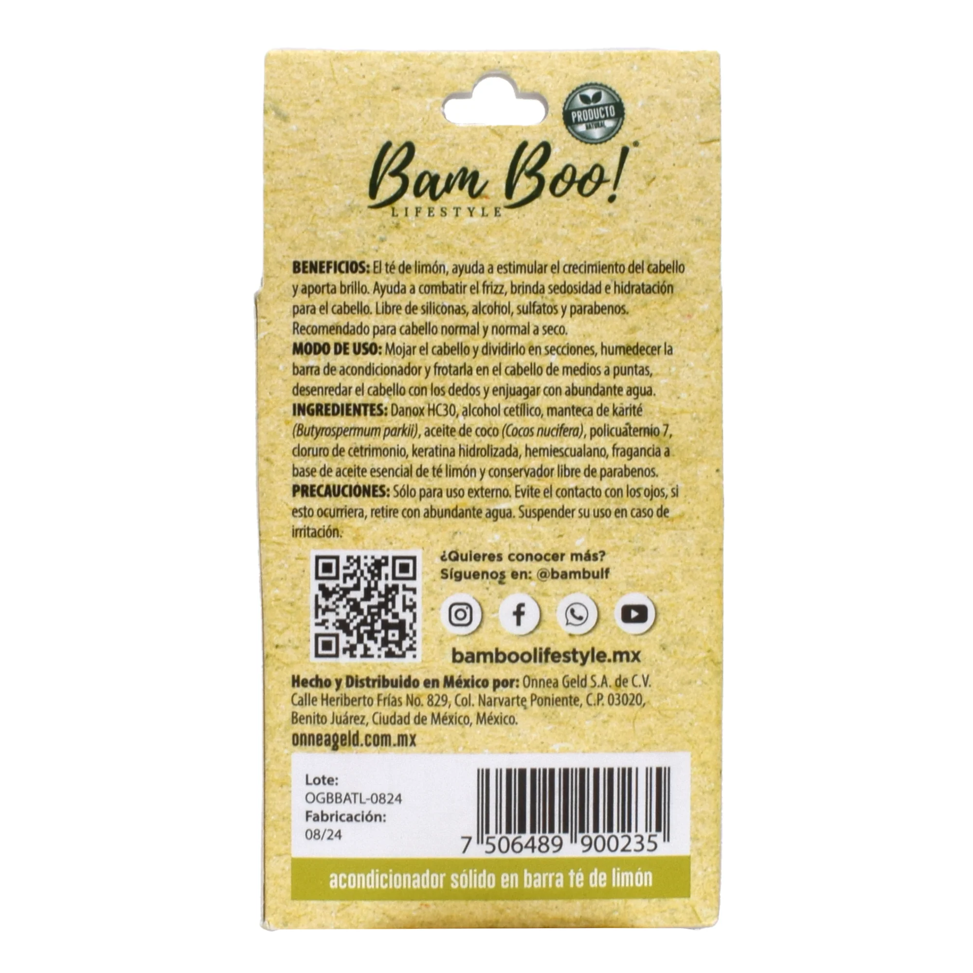 Manteca de karité, aceite de coco, keratina hidrolizada, fragancia a base de aceite esencial de té limón y conservador libre de parabenos