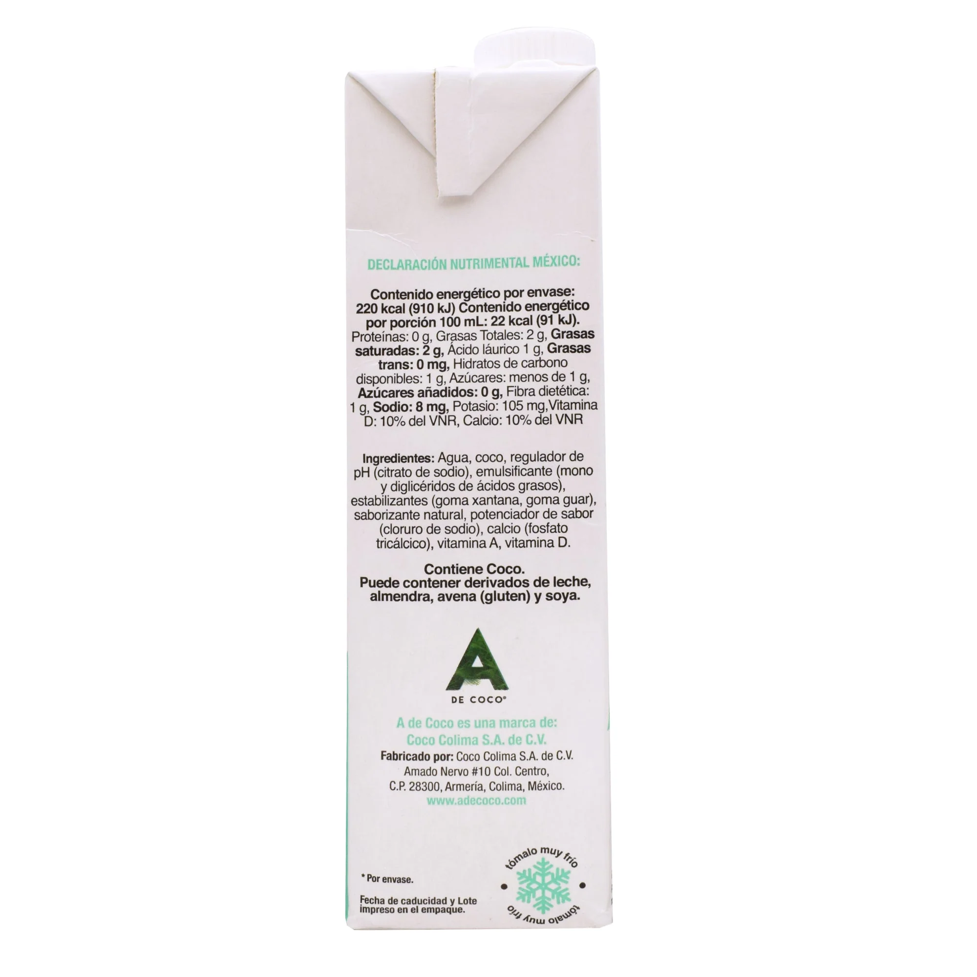 Agua, coco, saborizante natural, potenciador de sabor vitamina A y vitamina D