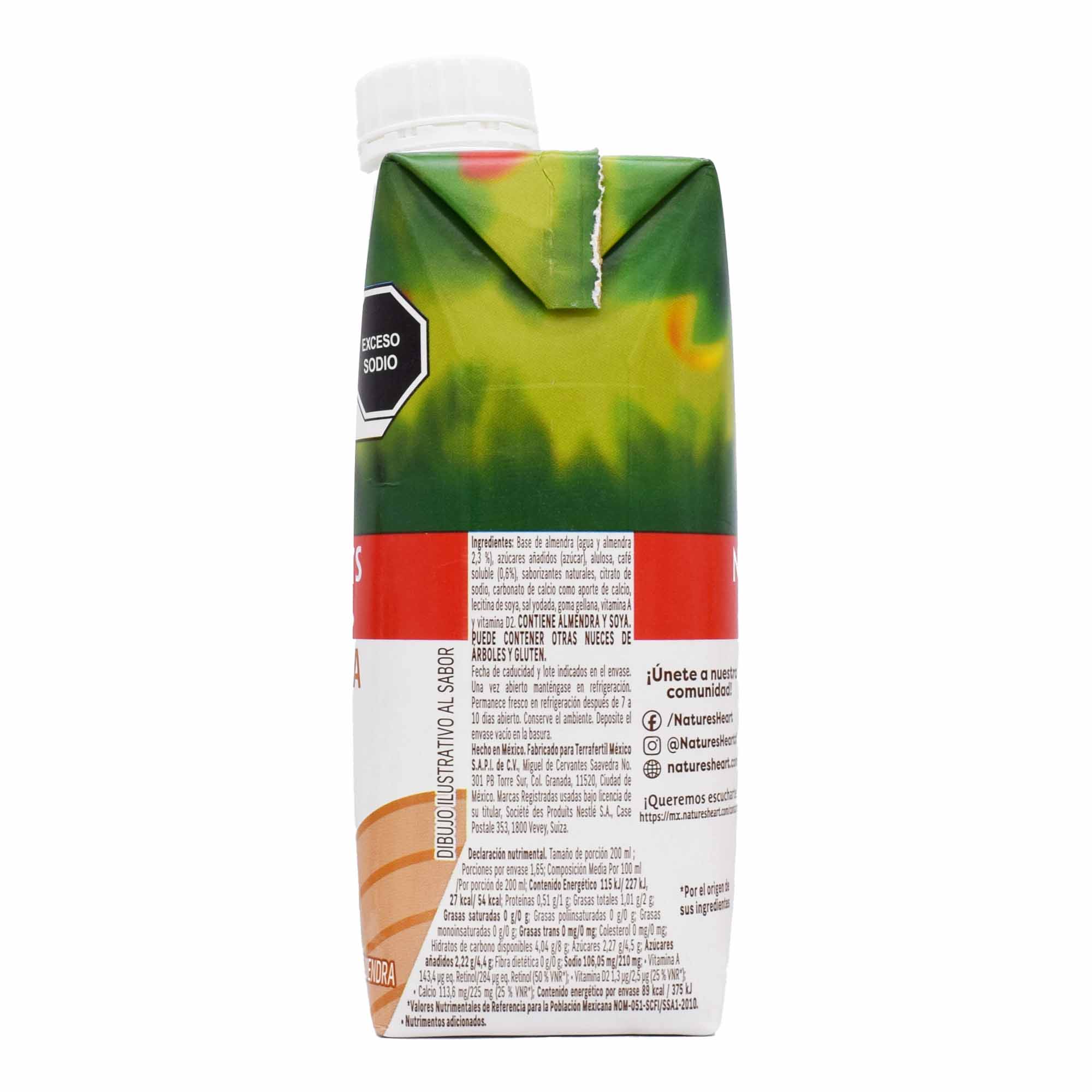 Agua, azíºcar aí±adida, base de almendra, café soluble, citrato de sodio, carbonato de calcio, saborizantes naturales, lecitina de girasol, sal, goma gellana, vitamina A y vitamina D2