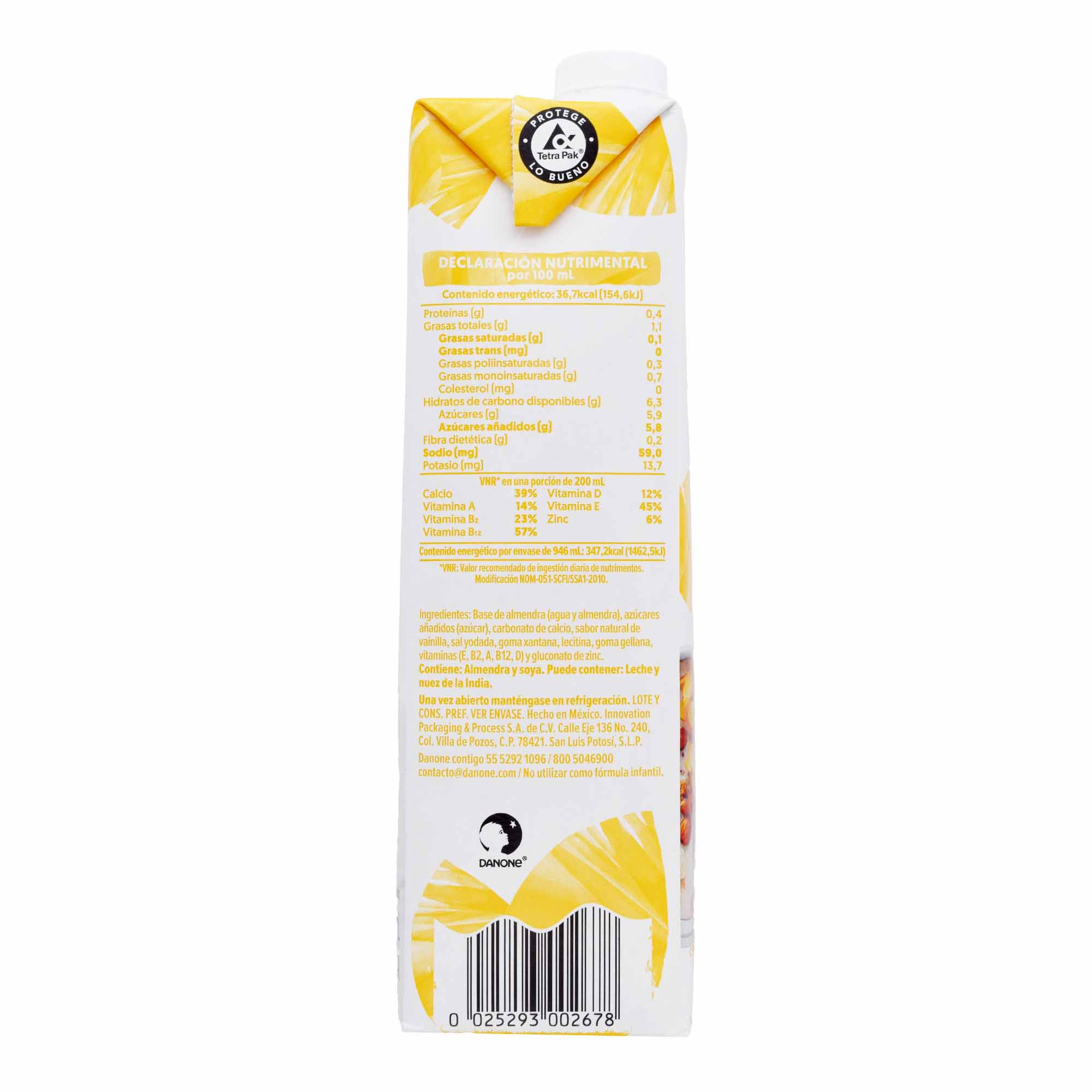 Base de almendra, azíºcar de caí±a, carbonato de calcio, sal yodada, saborizante natural, algarrobo, lecitina de girasol, goma gellana, vitaminas (E, B2, A, B12 y D), gluconato de zinc