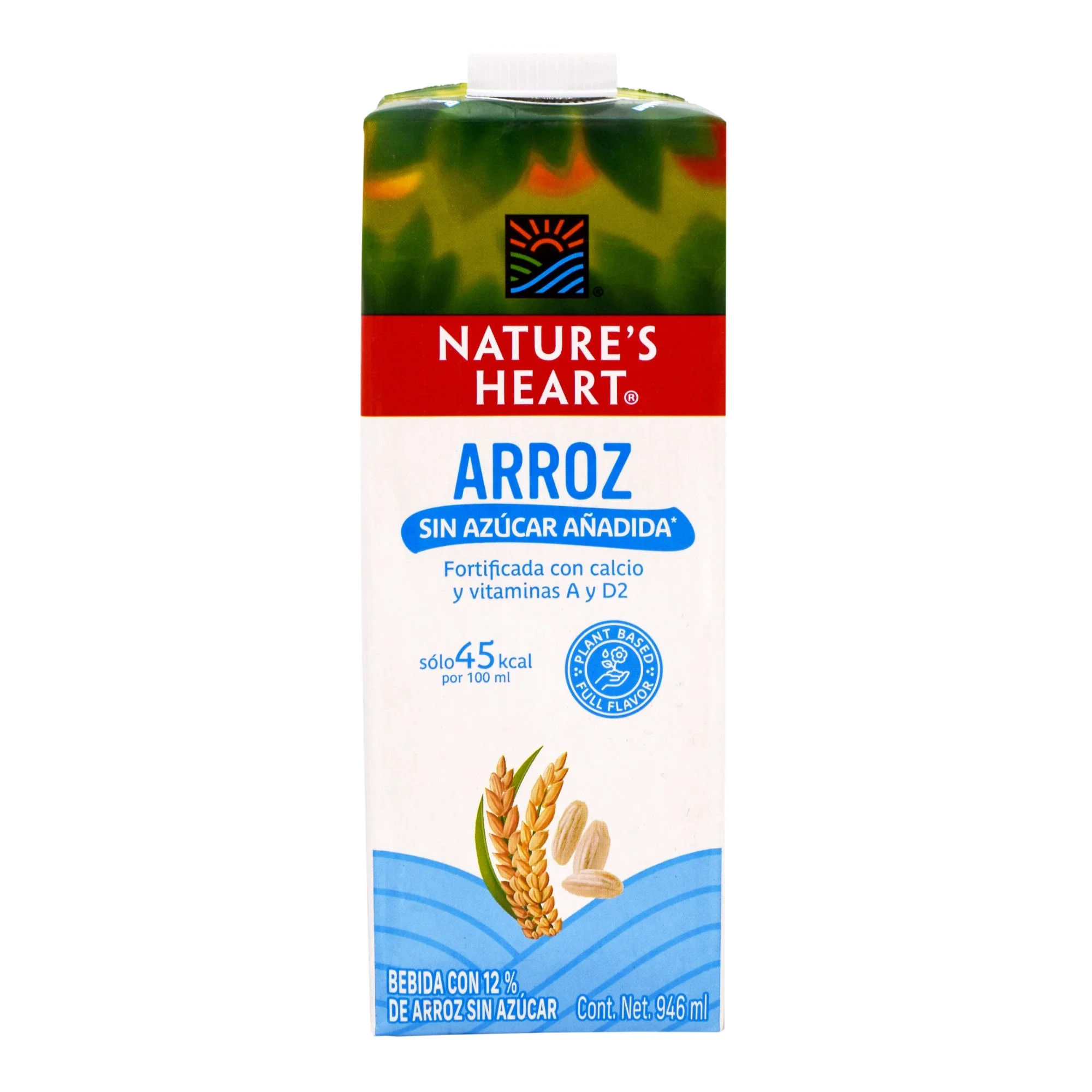 Base de arroz orgánica, aceite de girasol orgánico, carbonato de calcio, sal yodada, goma guar y goma gellana, vitamina A y D2