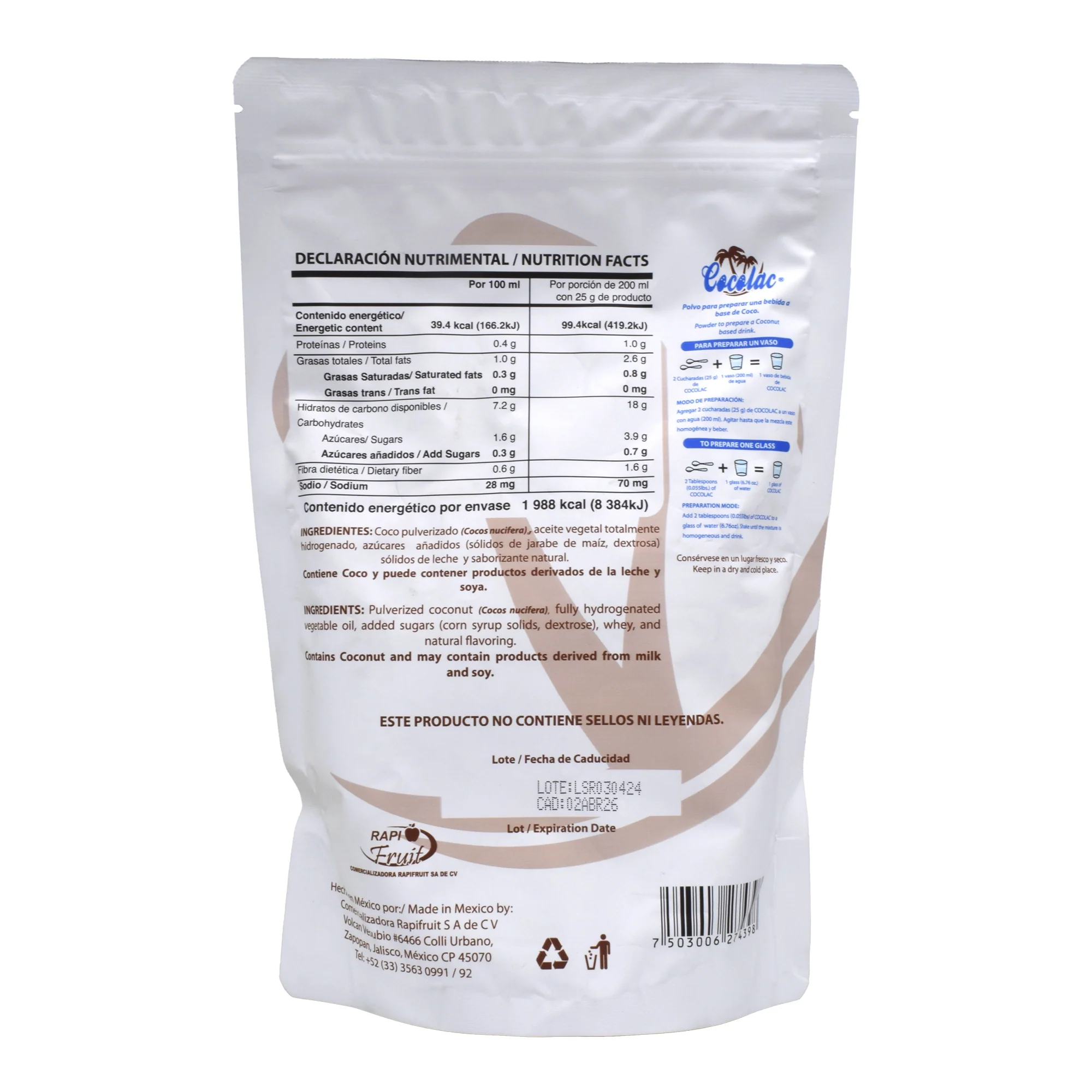 Coco molido, dextrosa, sabor coco y solidos de jarabe de maíz
