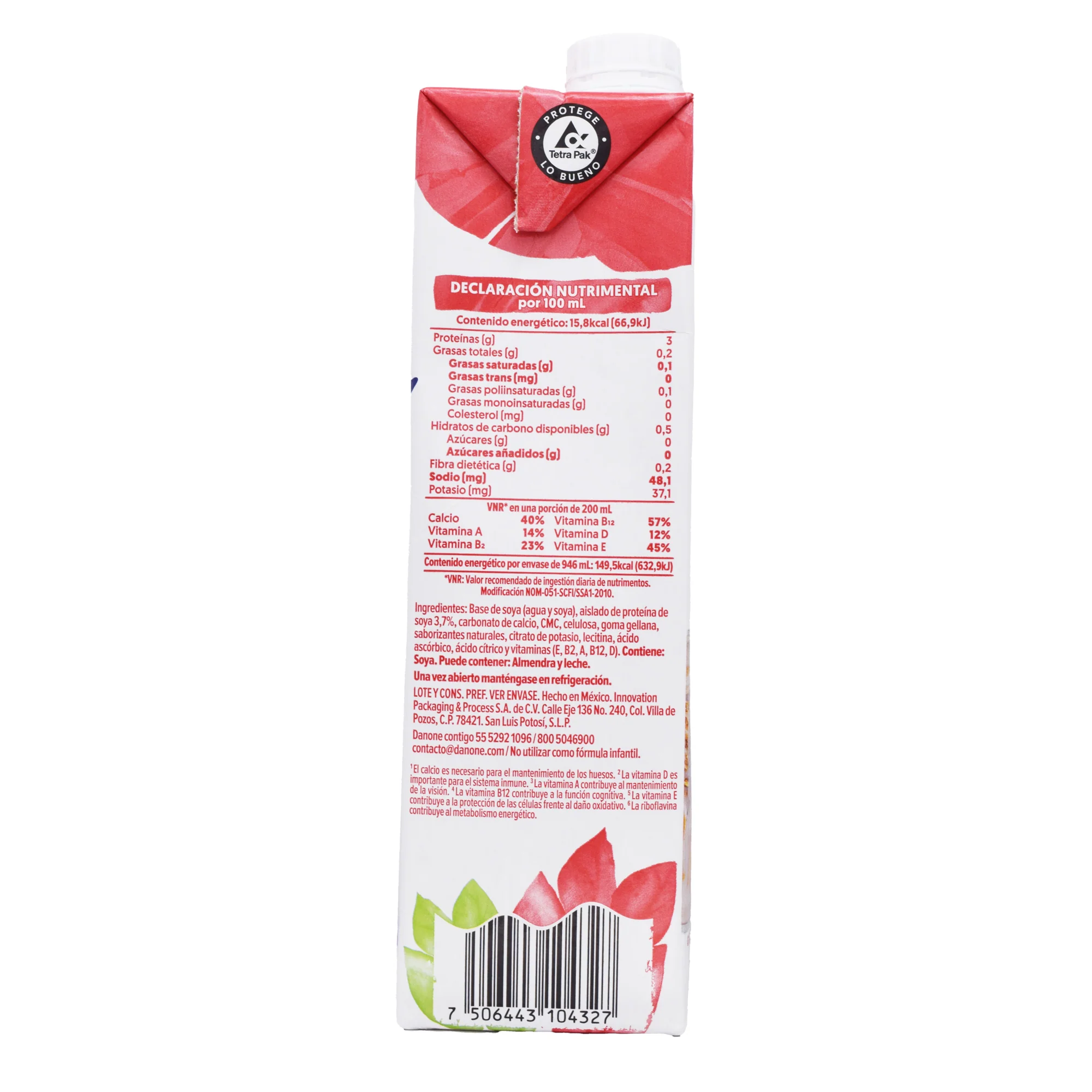 Base de soya, fosfato tricalcico, sal yodada, lecitina de girasol, goma gellana, saborizante natural, carbonato de calcio, ácido ascórbico, saborizante natural monk fruit, vitaminas (E, A, B2, B12, D), gluconato de zinc