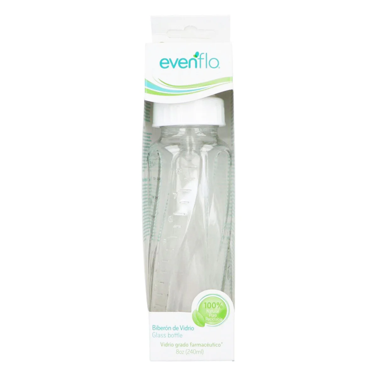 Biberón De Vidrio Evenflo, Recipiente Con Capacidad De 8 Onzas, Contenido De 1 Pieza, Soluciones Avanzadas Que Los Unen. Cuenta Con Un Sistema De Doble Válvula Anti Cólicos Que Regula La Presión Del Aire Dentro De La Botella, Flujo Medio Recomendado Para Bebés A Partir De Los 3 Meses De Edad.