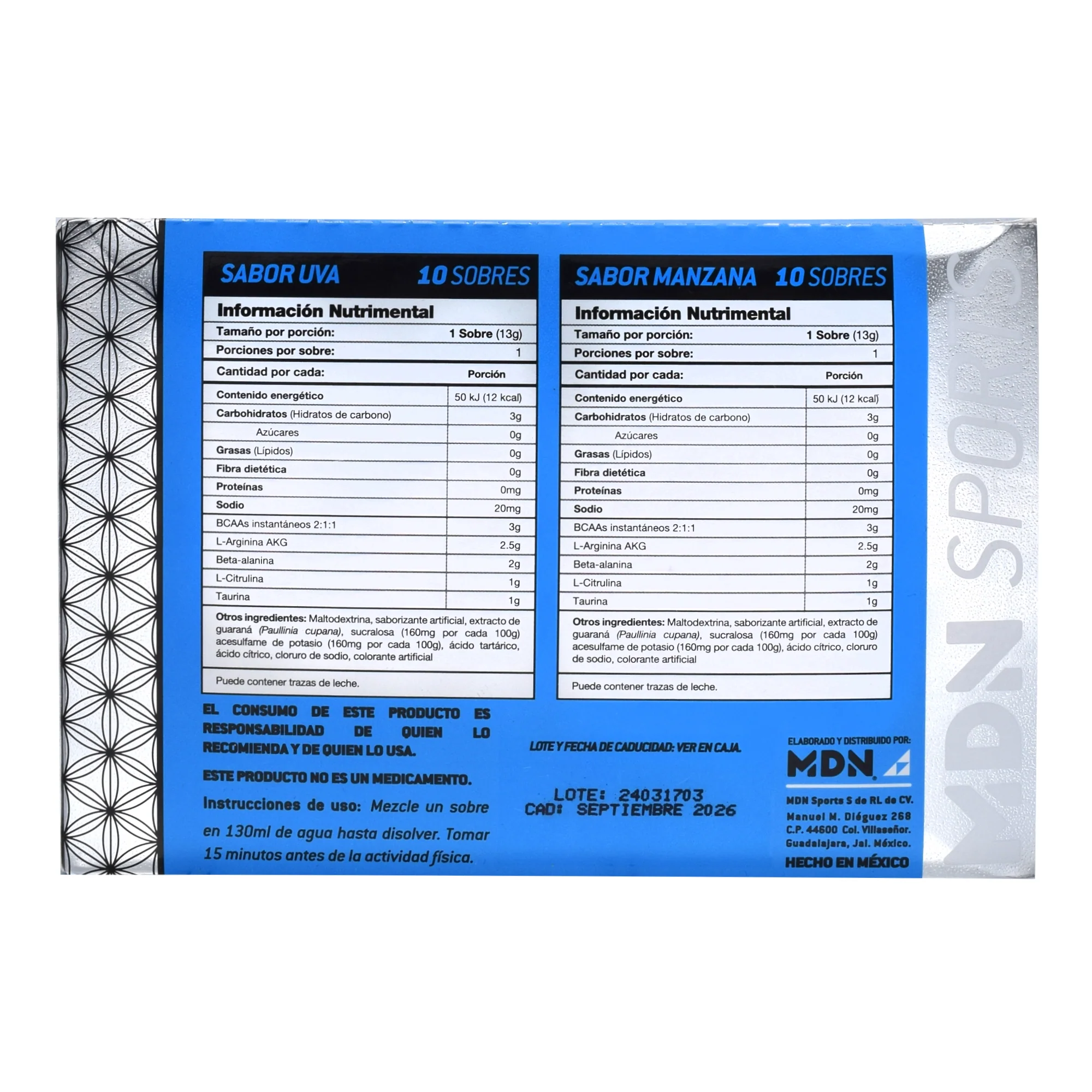 Mezcle una cucharada en 200ml de agua o jugo por 15 segundos o hasta que su apariencia sea homogenea. Tomar 20 minutos antes de la actividad fisica. Para mejores resultados ingerir 2 porciones al dia