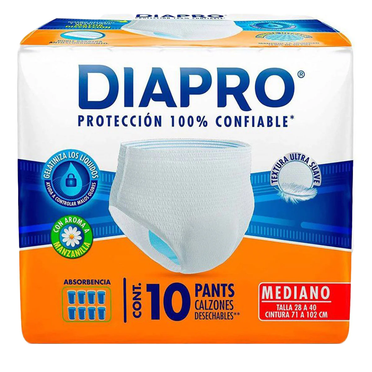 Calzón Diapro Pants Med En Una Presentación Única De 10 Piezas, Calzones Desechables Con Aloe Vera Para Cuidar La Piel Y Aroma A Manzanilla. Cuentan Con Una Tecnología De Máxima Absorción Que Gelatiniza Los Líquidos.