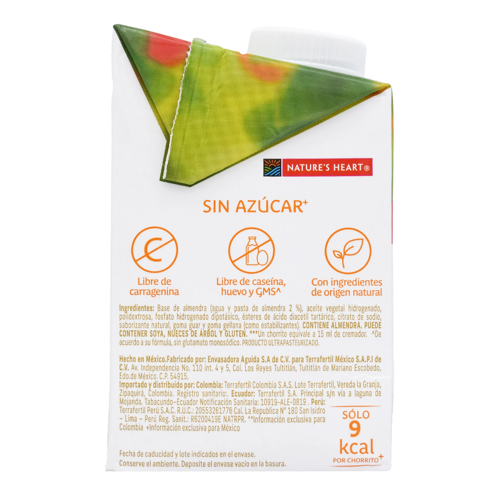 Base de almendra, polidextrosa, aceite vegetal hidrogenado, fosfato de potasio, esteres de ácido diacetil tartático, citrato de sodio, saborizante natural, goma guar y goma gellana