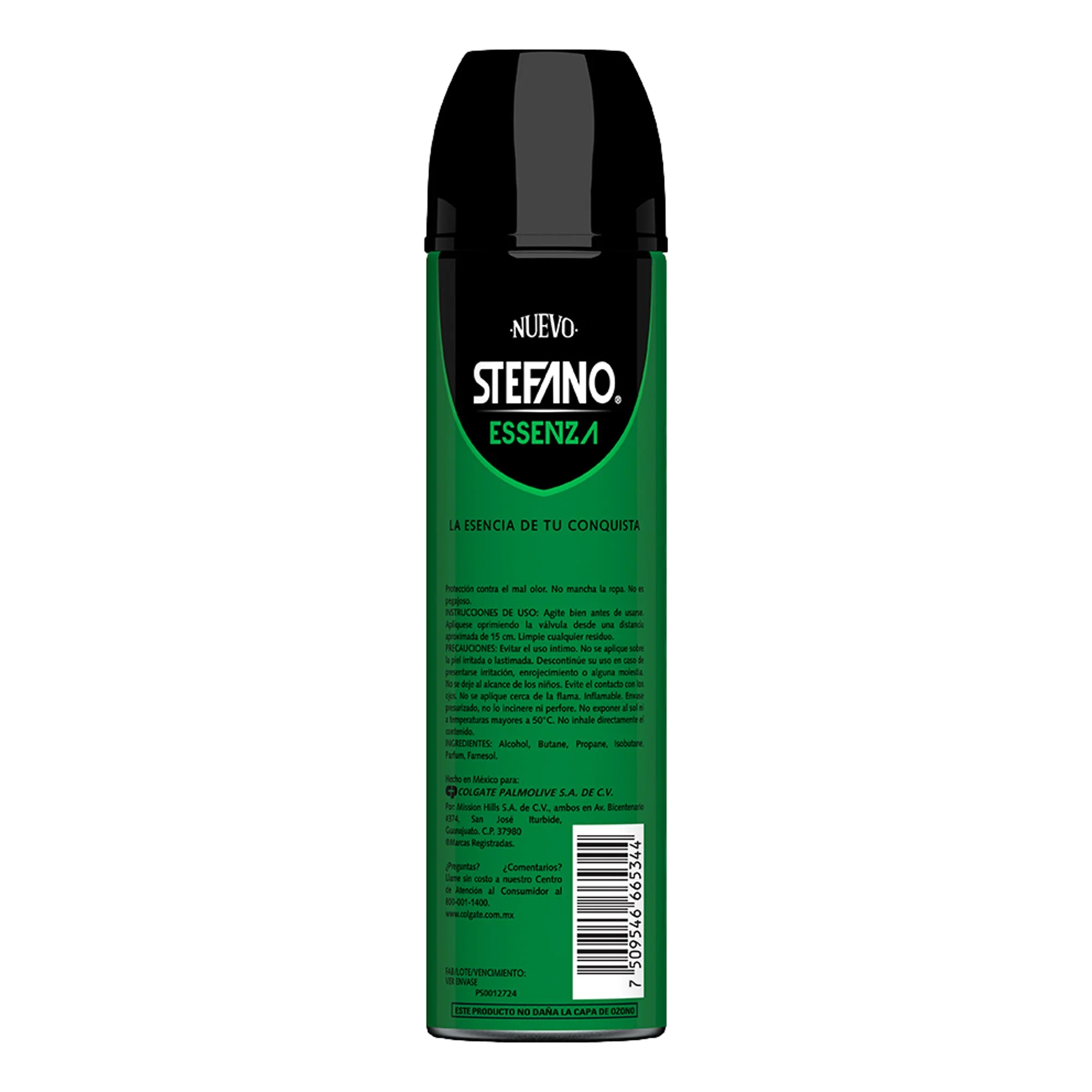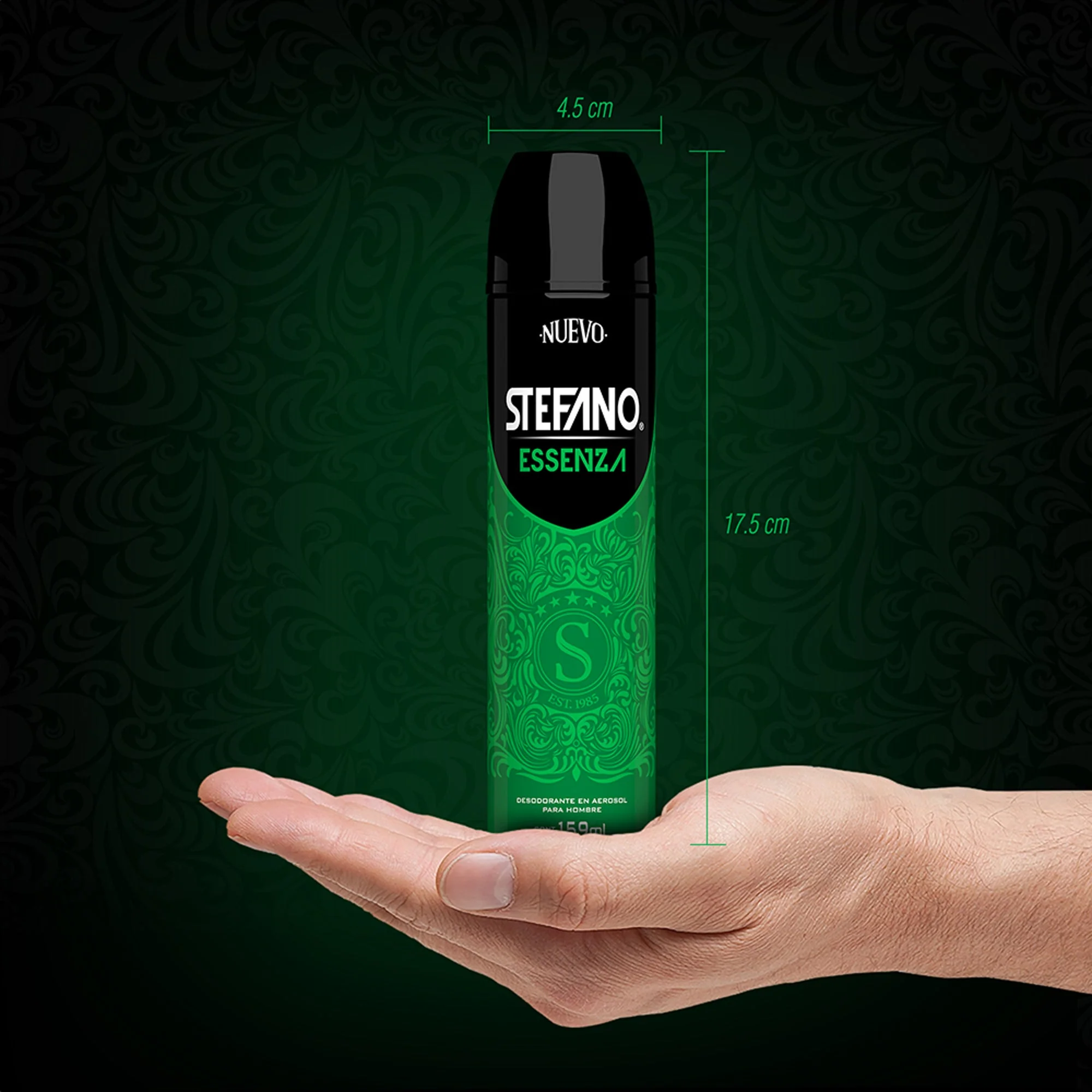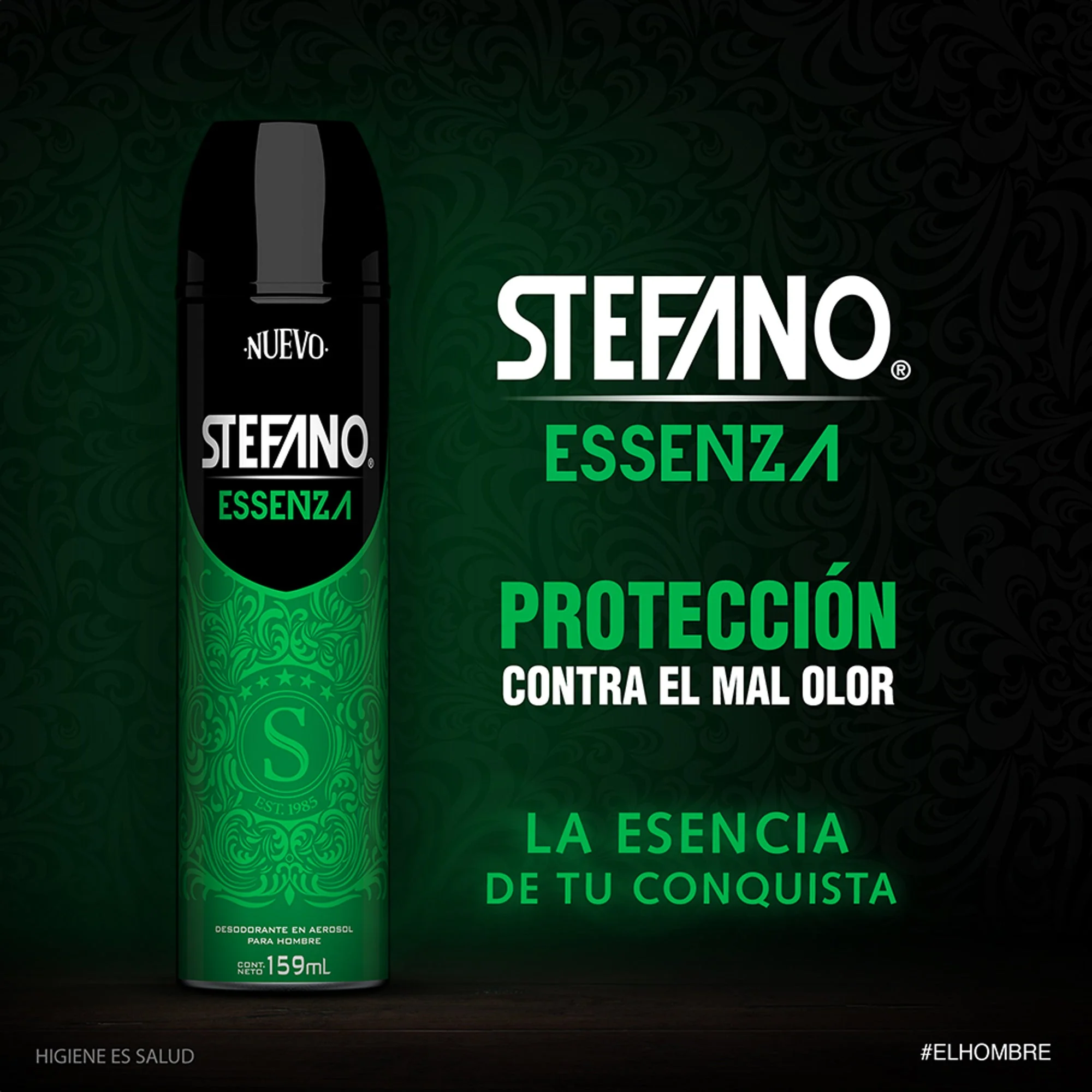 Disfruta de un exquisito aroma varonil con Stefano, que trae para ti su Desodorante Nuevo Essenza en una presentación de 159 mililitros en Aerosol. Una vez que lo pruebes no querrás cambiarlo por nada, pues te mostrará la verdadera esencia de tu conquista. Está elaborado por una fórmula que elimina el mal olor provocado por la sudoración, dándote la confianza que tanto necesitas para realizar cualquier movimiento o levantar los brazos, además, su mezcla no mancha la ropa, por lo que podrás usar tus prendas favoritas sin que éstas se vean afectadas. Axilas frescas, sin sensación pegajosa y libres de mal olor, es el resultado después de probar Stefano Nuevo Essenza, el Desodorante hecho especialmente para el cuidado masculino.