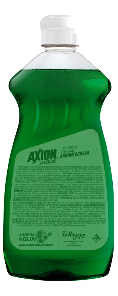 Realiza el aseo de tus utensilios de cocina utilizando el Lavatrastes Axion Limón de 400 mililitros, descubre cómo su poderosa fórmula te permitirá arrancar con facilidad cualquier suciedad, mancha, grasa pegada o restos de alimentos. Disfruta de su poderosa fórmula con 5 veces más poder que, además de proporcionarte una limpieza inigualable, te permitirá neutralizar los olores desagradables que se hacen presentes en tus trastes después de cocinar.Adquiere esta presentación que te permitirá utilizarlo en más de una ocasión, lavando una gran cantidad de trastes con solamente unas gotas. Descubre la amplia variedad de productos Axion en distintas fragancias y tamaños que te encantarán, gracias a que son efectivos, pero suaves con tu piel.