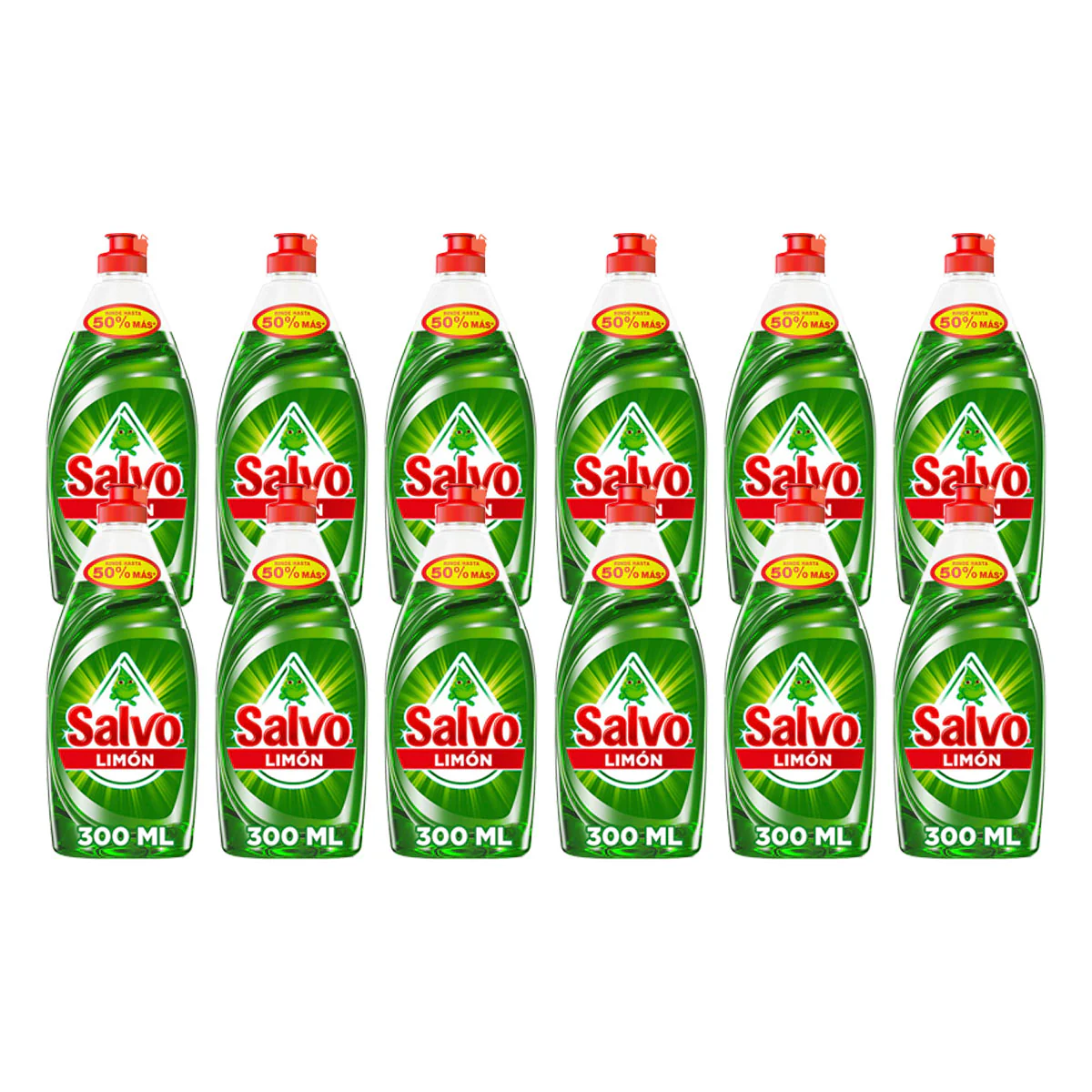 Detergente Para Trastes, Salvo Limón. Presentación 12 Piezas De 300 Gramos, Más Dos Piezas De Regalo. Ideal Para La Limpieza De Tu Hogar. Con Poder Cortar Grasa. Con Muy Poco Logras Mucha Espuma.