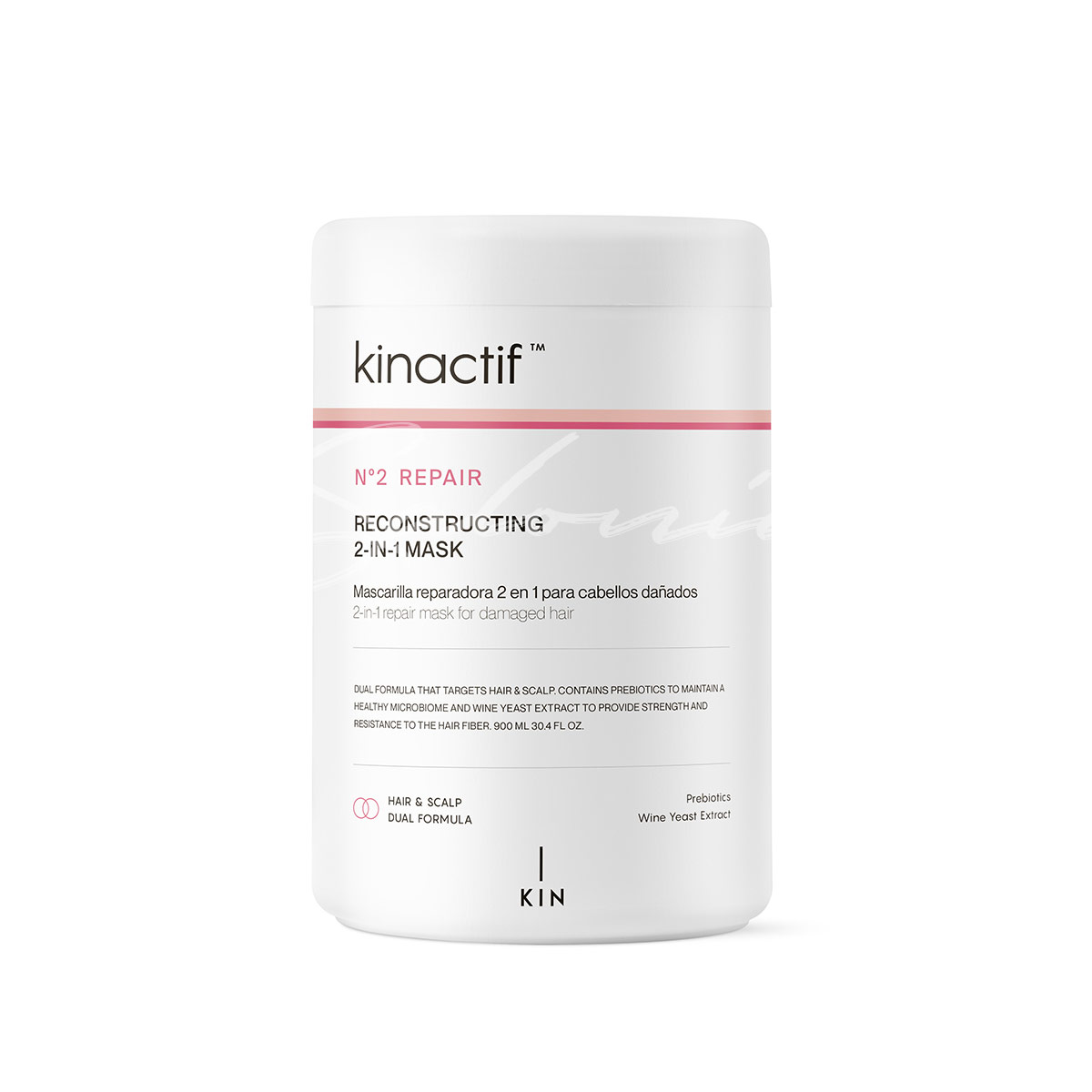 [/vc_column_text][vc_column_text]La Mascarilla Reparadora Kinactif Nº2 de KIN Cosmetics es ideal para cabellos dañados y sensibilizados, proporcionando una reparación profunda y continua. Este tratamiento 2 en 1 actúa como acondicionador o tratamiento intensivo según el tiempo de exposición, eliminando el encrespamiento y fortaleciendo la fibra capilar.[/vc_column_text][vc_column_text]Formulada con prebióticos y extracto de levadura de vino, esta mascarilla equilibra el microbioma del cuero cabelludo y recupera la elasticidad del cabello. Es 100% vegana y garantiza un cabello suave y revitalizado.[/vc_column_text][vc_empty_space][/vc_column][/vc_row][vc_row][vc_column width=”1/2″][vc_column_text]