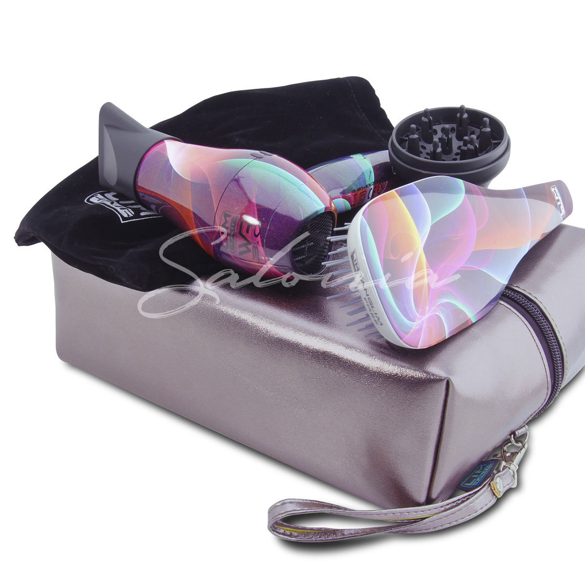 Además, el pack incluye un cepillo desenredante TANGLIM FREE, especialmente diseñado para desenredar el cabello sin causar tirones ni dañar el pelo. Tanto el secador como el cepillo están disponibles en 4 atractivos diseños, cada uno con un estilo único.
