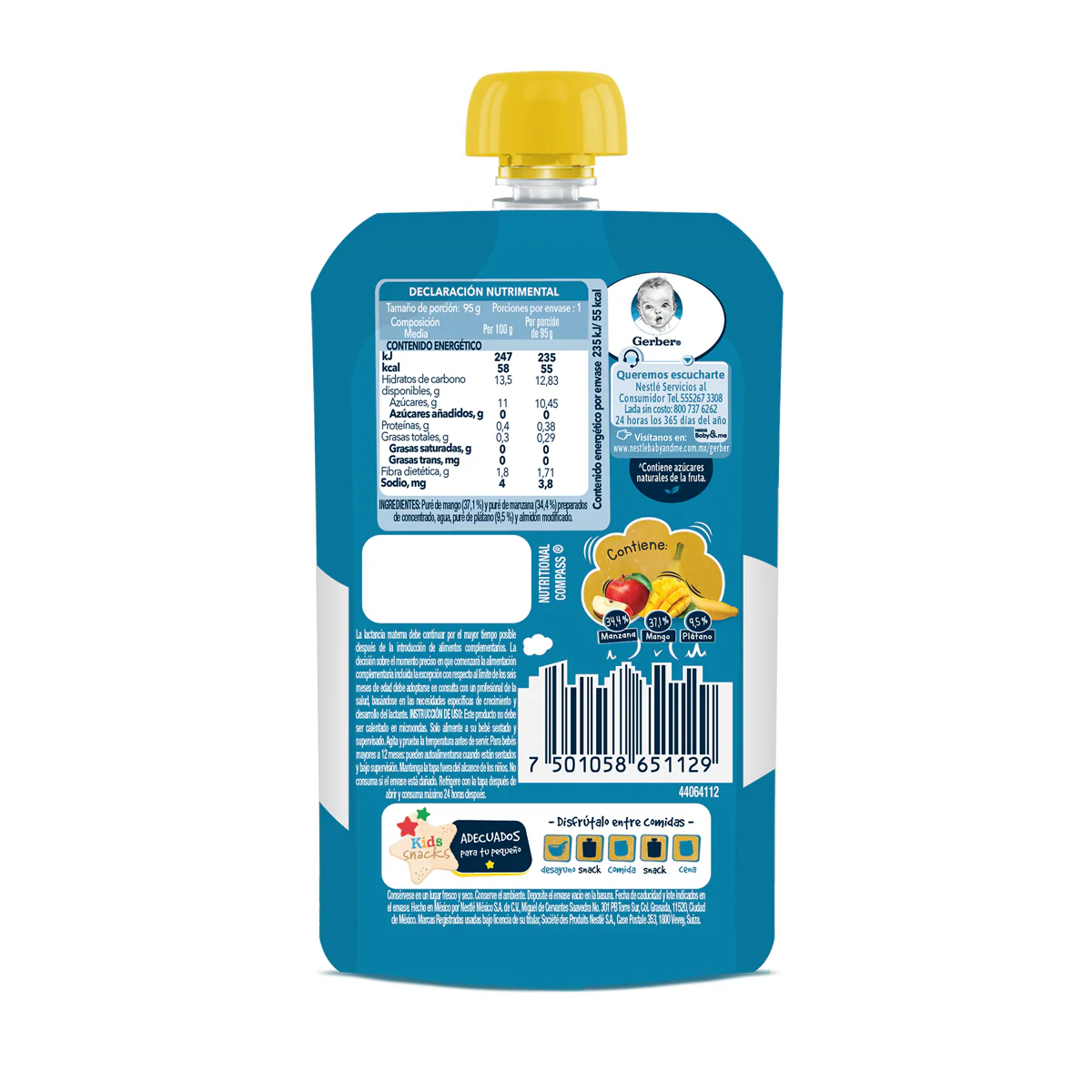 Papillas para bebé Gerber Junior Etapa 4 Pouch de frutas mixtas (alimento para bebé de 1 año en adelante). Las papillas de 12 meses Gerber Junior son el snack para bebé: -Papilla de fruta natural cosechada especialmente para tu bebé. -Sin colorantes artificiales. -Sin saborizantes artificiales. -Sin azúcar añadida. -Sin conservadores químicos. Con los Junior Pouch de Gerber fomentas la autonomía de tu bebé para que pueda seguir disfrutando de todos los sabores de Gerber que tanto le encantan. Gerber: Por tu bebé, todo.