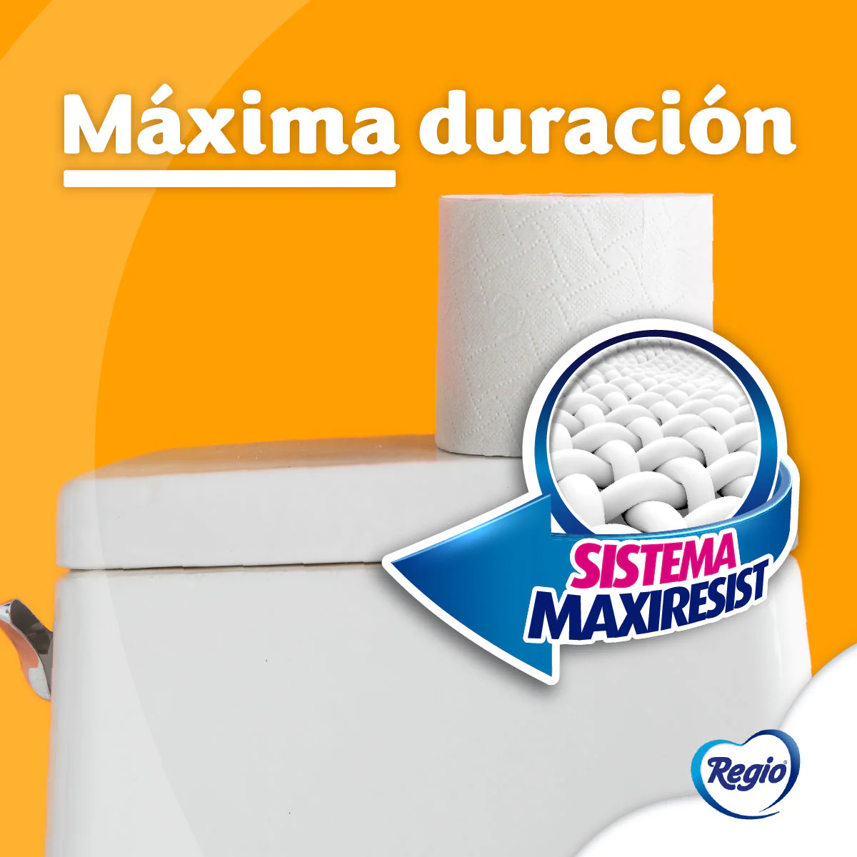 ¡Más rendimiento para cada hogar! Con Regio Rinde+, tus clientes tendrán un papel higiénico resistente que nunca falla. Su Sistema Maxiresist asegura que cada hoja sea ideal para durar más y cuidar mejor a toda la familia. Cuenta con la tecnología de Regio Odor Control que ayuda a eliminar los malos olores en al baño. ¡El producto que tus clientes siempre agradecerán encontrar en tu tienda! Con Regio Rinde+, lo bueno rinde+.