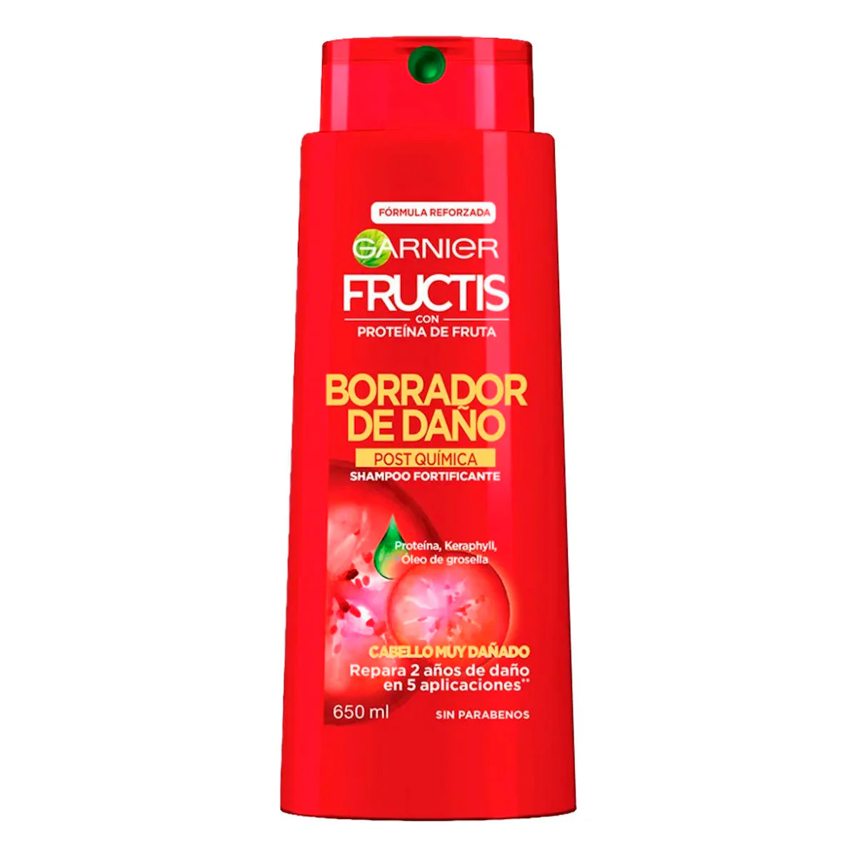 Shampoo Garnier Fructis Grosella De 650 Mililitros. Para Un Cabello Muy Dañado. Fortificante Con Proteína De Fruta.