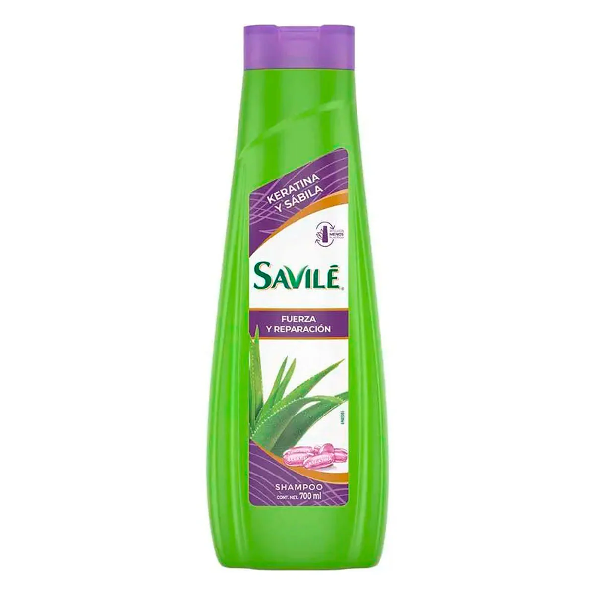 Shampoo Savile Keratina De 700 Mll. Actúa directamente sobre la superficie del cabello creando una película protectora que mantiene la hidratación natural del cabello dejándolo suave y hermoso.