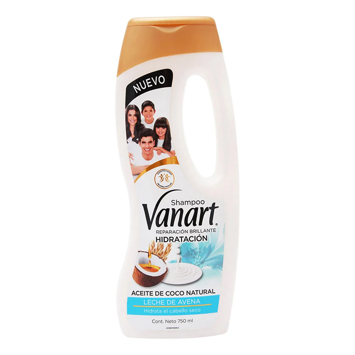 Shampoo Vanart, Reparación Brillante, Hidratación. Con Aceite De Coco Natural Y Leche De Avena, De 750 Mililitros. Nutre Tu Cabello Y Déjalo Brillante. Suavidad Natural.