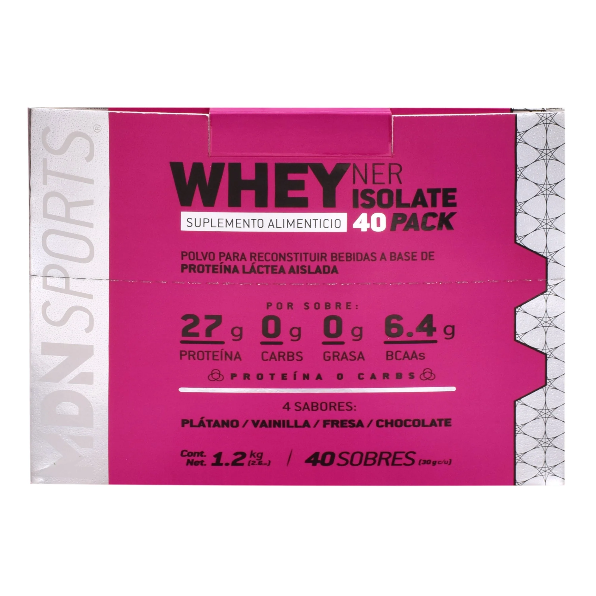 Proteína aislada de suero de leche, saborizante artificial, acesulfame de potasio, sucralosa, goma xantana