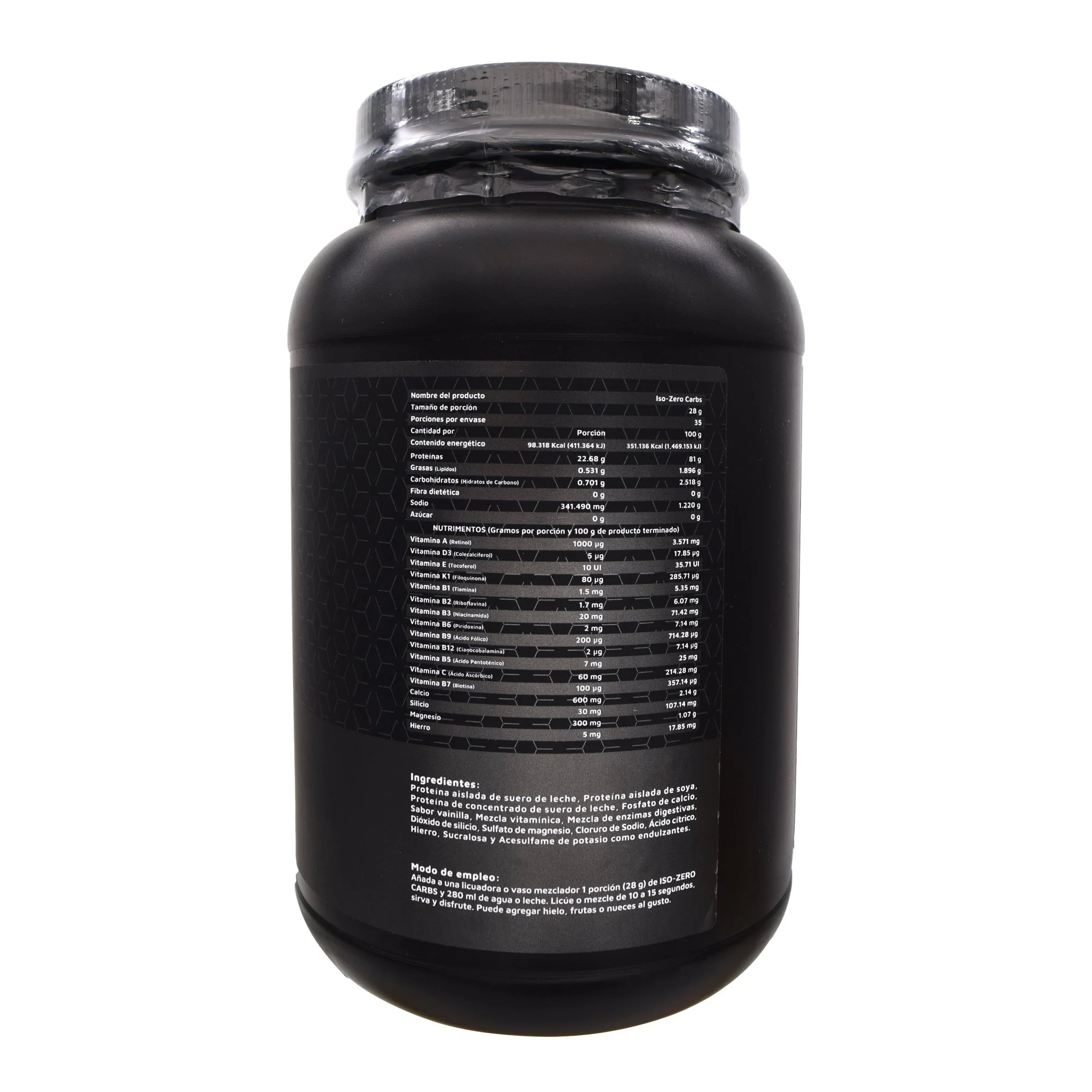 Proteína Aislada de Suero de Leche, Proteína Aislada de Soya, fosfato de calcio, sabor vainilla, mezcla vitamínica, mezcla de enzimas digestivas, dióxido de silicio, sulfato de magnesio, cloruro de sodio, ácido cítrico, hierro, sucralosa y acesulfame de potasio